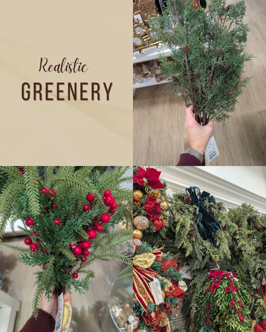 The other evening I was at HomeGoods and found some amazing and affordable greenery – branches, glittery pine cones, and this gorgeous wreath: